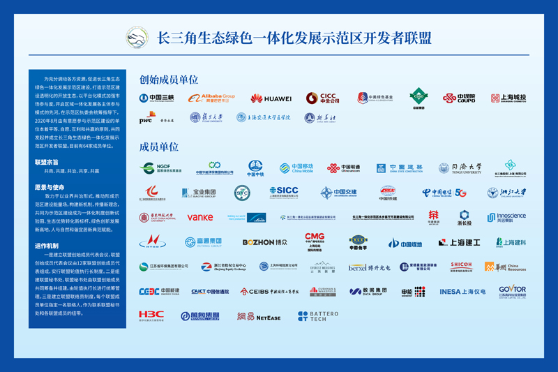 在示范區執委會統籌指導下,聯盟12家創始成員,13家第一批入盟成員,16家第二批入盟成員及12家第三批入盟成員,緊扣“一體化”和“高質量”兩個關鍵詞,真抓實干。今年的開發者大會上,“朋友圈”再擴容,又有13家成員單位加入聯盟,共享一體化機遇,共同參與高質量發展。