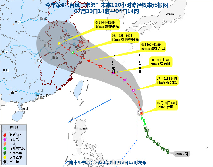 新臺風“卡努”預計8月2日在浙江沿海登陸,對上海影響比“杜蘇芮”嚴重