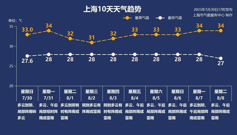 今天,上海是藍天白云的水晶天,午后局部地區有短時陣雨或雷雨,氣溫整體較昨天略高,最高溫達34℃。市氣象部門提醒,新的一周環流形勢場復雜,副熱帶高壓南側對流活躍,這為未來“卡努”路徑和上海天氣帶來更多變數。
