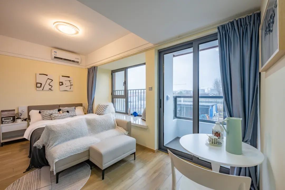 城家公寓整體采用原木風設計,分區合理,空調、洗衣機、冰箱、燈、家具等設施均已全部到位,完全實現了拎包即可入住。作為虹橋國際中央商務區重點打造的人才公寓,共有33-75平方米4種不同戶型。