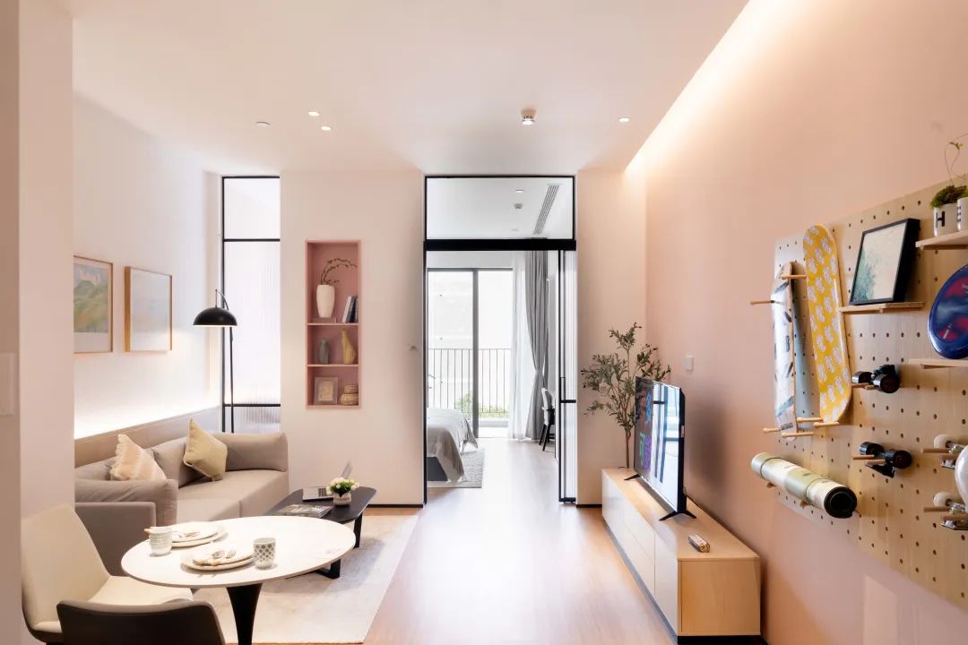 作為閔行區2022年授予“人才公寓”榮譽稱號的項目,COZI可遇·虹橋店有一室戶、一室一廳、兩室一廳等多種戶型,共589套,配備智能門鎖、智能水電表、智能家居,其中70%的戶型帶有開放式陽臺。