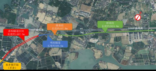 示范區線3標包含水鄉客廳站(不含)至西岑站(不含)范圍內的盾構區間、明挖隧道段、路基段、橋梁區間等土建工程,長度約5公里。