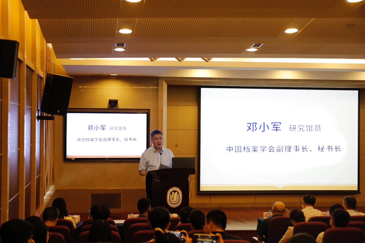 中國檔案學會副理事長、秘書長鄧小軍,上海市檔案局局長、上海檔案館館長徐未晚,教育部檔案學專業教指委主任委員張斌,上海大學黨委副書記段勇到會致辭,安徽省檔案館黃玉明館長、南京大學信息管理學院吳建華教授等11位專家學者圍繞“檔案賦能中國式現代化建設”主題作了專題學術報告。