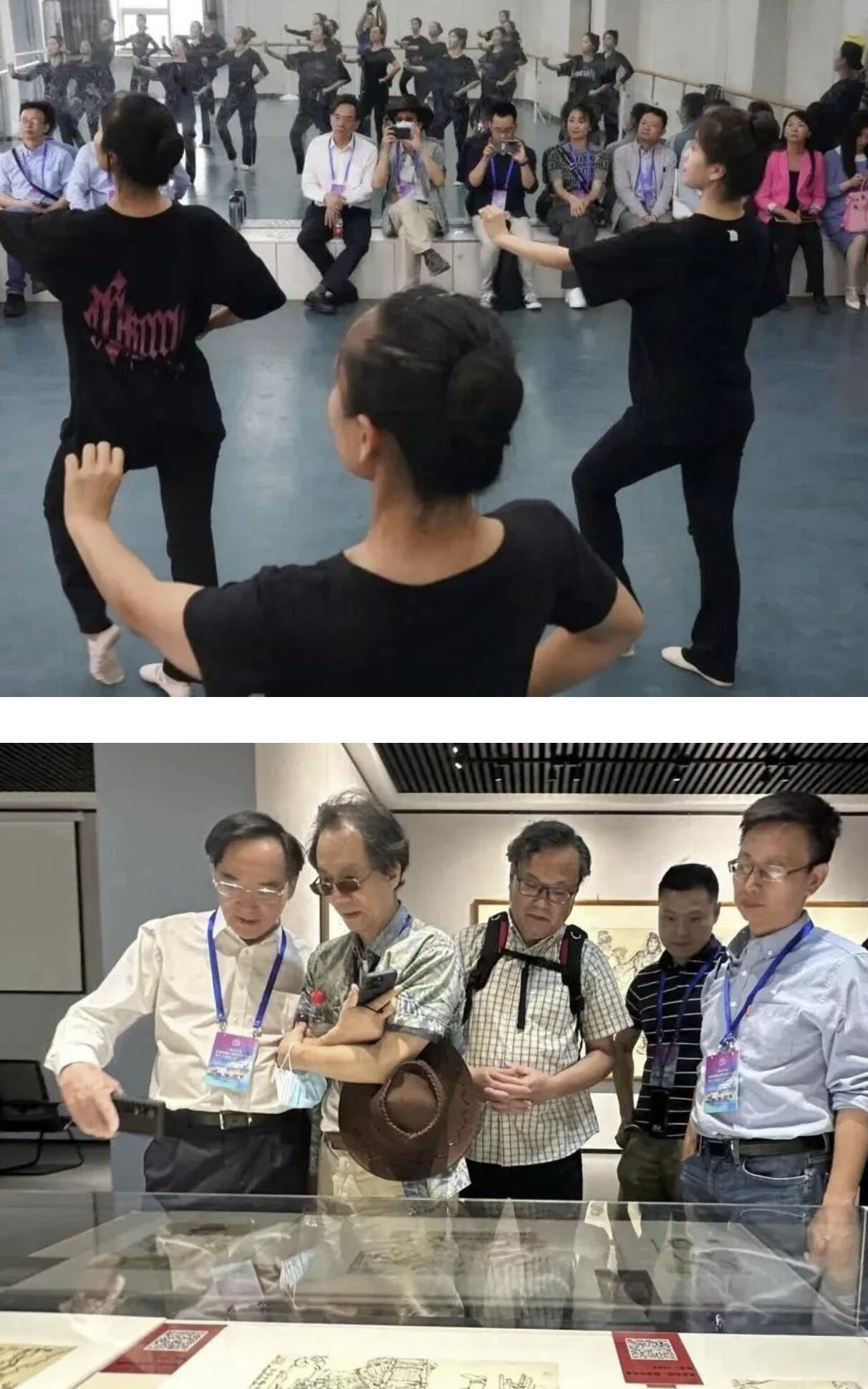 與此同時,上海藝術家與喀什大學音樂與舞蹈學院、美術與設計學院師生開展了交流活動,分享創作、教學等方面的經驗。其中,舞蹈家們深入了解了喀什大學的舞蹈教學;畫家們在參觀師生展和黃胄藝術研究院時,與美術老師進行了探討,并就如何浸入式教學,提升學生的眼界等給出了針對性建議。