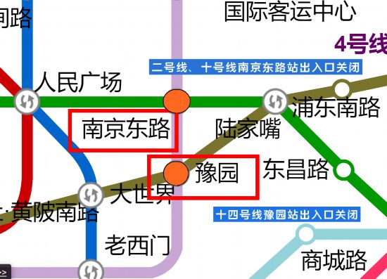 (一)9月28日20時至當日運營結束;9月29日至10月6日,每日16時至當日運營結束,軌道交通二號線、十號線南京東路站出入口、軌道交通十四號線豫園站出入口關閉。