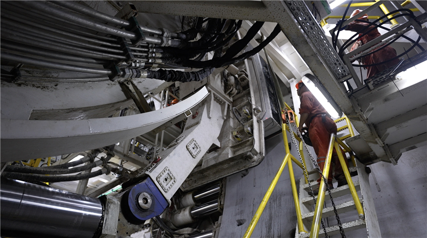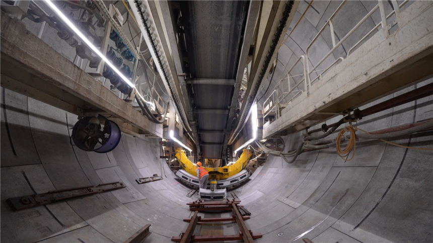 崇明線工程:崇明線是崇明一體兩翼交通格局的首發項目和上海軌道交通“十四五”開局之年的先行線路,將首次以全地下形式兩次穿越長江。崇明線工程起自浦東金吉路站,經長興島至崇明島陳家鎮,設車站8座、大小盾構轉換井4座、車輛段和停車場各一處,目前已開工5座車站,其中高寶路站主體結構已封頂,4座大小盾構轉換井已開工3座。越江大盾構南港累計完成推進2.9公里(完成率37%),北港累計完成推進1.8公里(完成率20%),均已進入江底正常推進區段;長興島站至長興北轉換井小盾構上先行推進完成57%,下行線推進完成99%(接收階段)。(圖片均由上海地鐵提供)