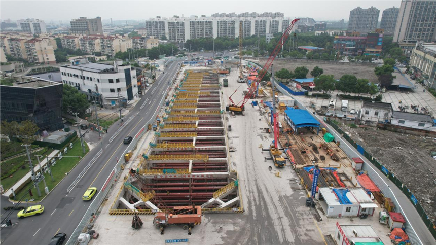 17號線西延伸工程:17號線西延伸自17號線東方綠舟站(不含)向西延伸,全長約6.6公里,設車站1座。目前17號線西延伸工程西岑站主體混凝土結構已封頂,二次結構施工完成,即將開始裝修安裝施工;高架區間下部結構全部完成,全線U梁架設已超80%;攔路港節點橋和跨G50節點橋掛籃懸臂澆筑節段順利推進;軌道工程日前通過首件制驗收,即將開始正式施工。