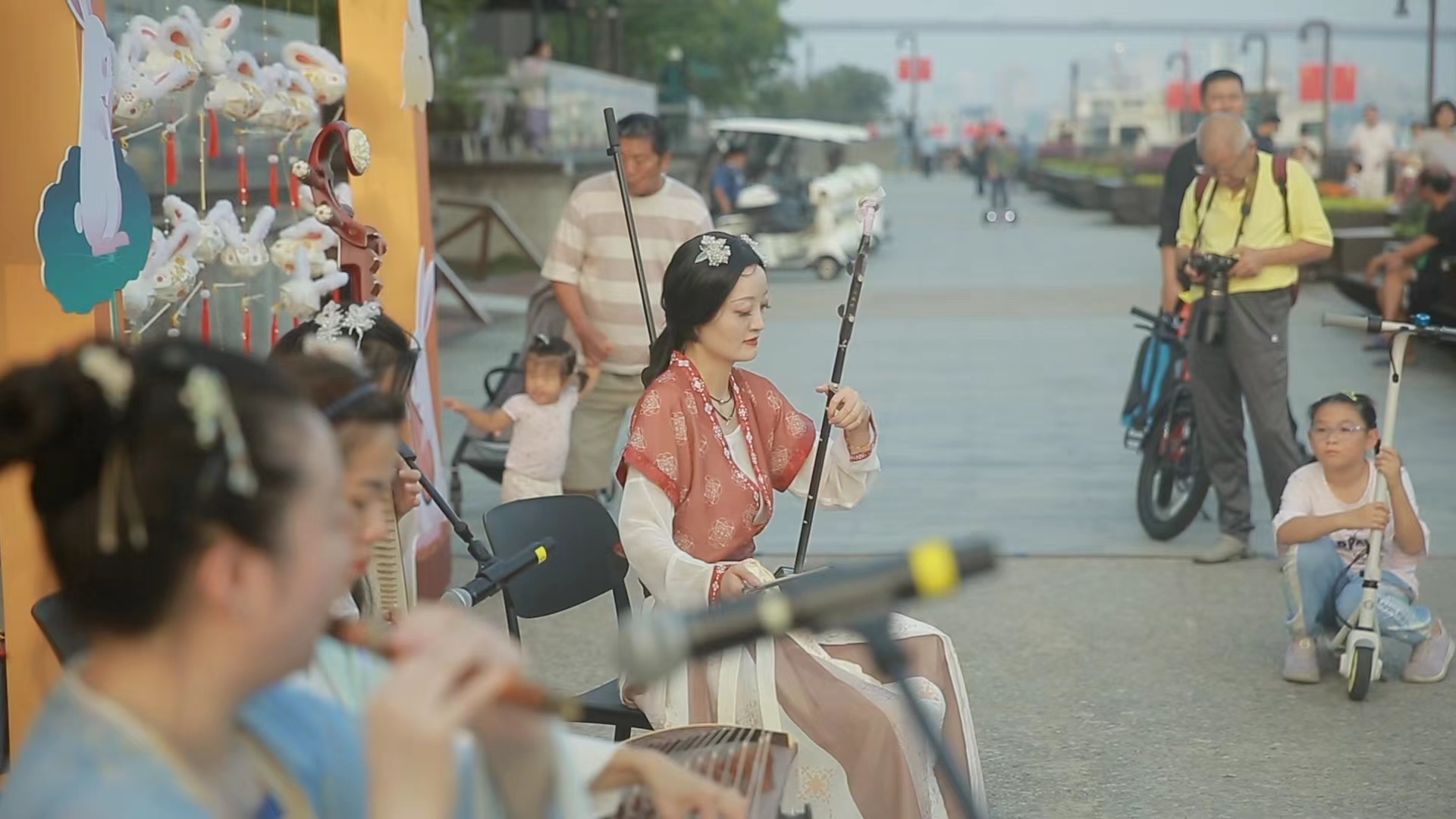 或空靈婉轉,或典雅古樸,或悠揚瀟灑,或蕩氣回腸。伴著習習江風,迎著冉冉夕陽,傳統器樂在一曲曲演奏中將中秋的團圓歡樂、思鄉思親演繹的娓娓動聽、深入人心,久久縈繞在圍觀的市民游客的心中。演出結束,現場掌聲雷動,觀眾們紛紛感嘆這場民族樂器演奏帶來的獨特魅力。