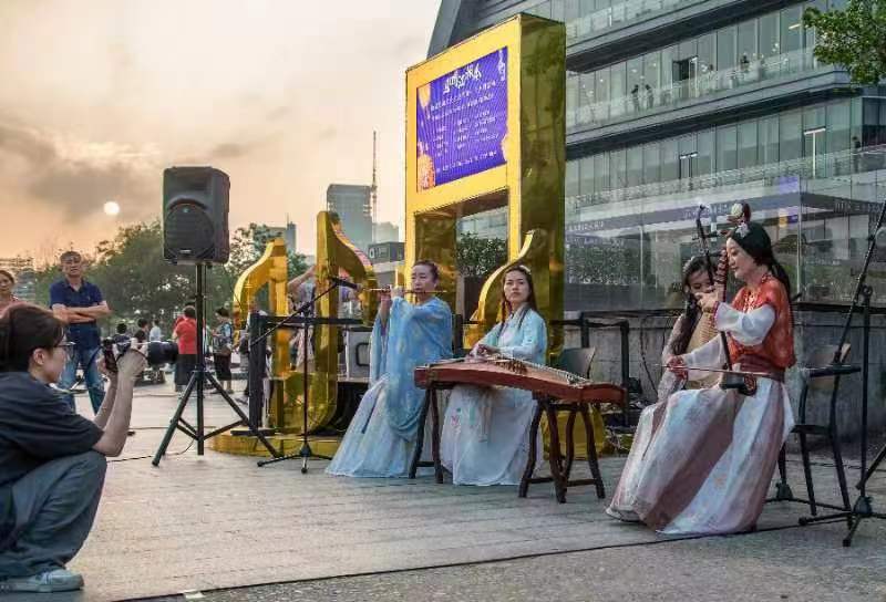 本次活動以中秋節為契機,特邀來自羽音民樂坊的演奏家們,身著漢服,現場為市民游客帶來精彩絕倫的民族音樂盛宴。