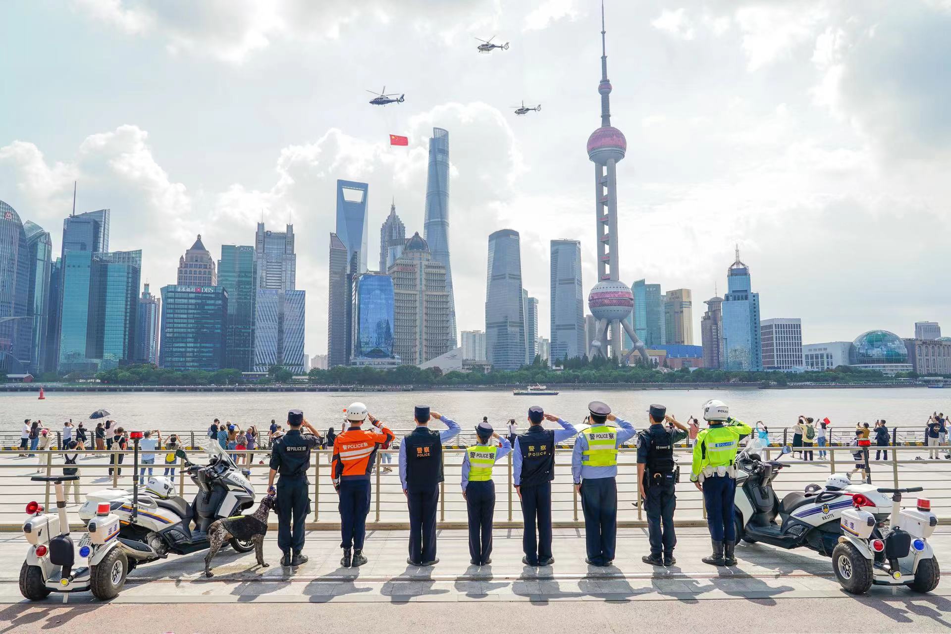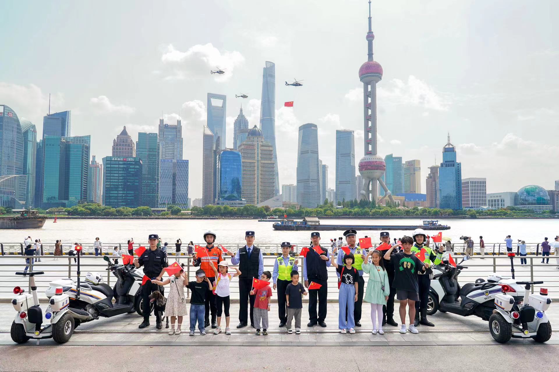 這些受邀先進民警代表,今天來到外灘,親眼目睹公安的直升機掛國旗飛行巡展,都感到心潮澎湃、激動萬分。
