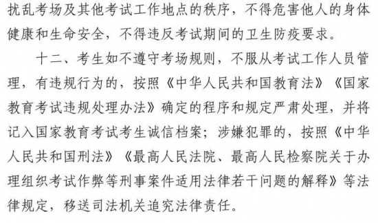 如在考試過程中發現考生隨身攜帶手機等具有發送或者接收信息功能的設備,無論使用與否,均認定為考試作弊,取消當次考試所有科目成績。