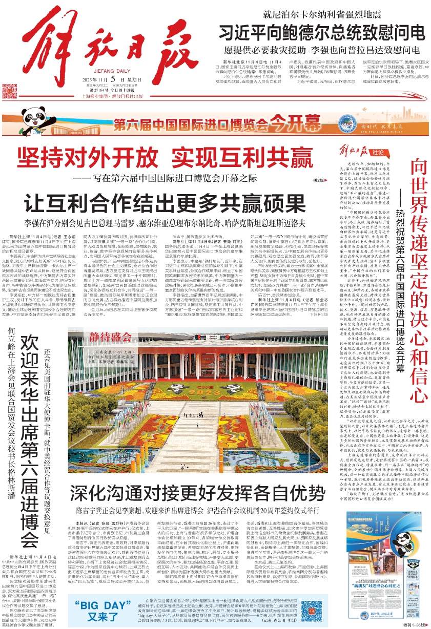 李家超感謝上海長期以來給予香港發展的支持和幫助,預祝第六屆進博會取得圓滿成功。他說,香港和上海有著穩固合作基礎,各領域交流交往頻繁、互補性強,此次來滬更加深切感受到上海這座城市的勃勃生機和發展勢頭。香港在積極主動融入國家發展大局、對接國家發展戰略的過程中,期待與上海進一步深化合作,圍繞科技創新、金融服務、人才集聚等,加強優勢對接、推進互學互鑒,更好依托進博會這一重大平臺拓展經貿合作,攜手創造更加美好的未來。