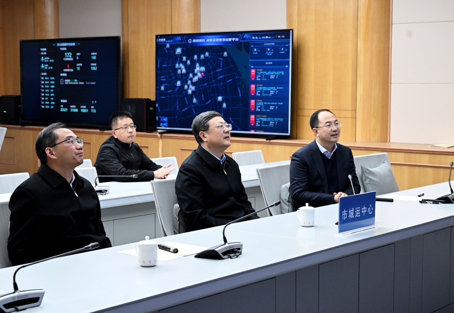 隨后,陳吉寧來到市城市運行管理中心,慰問值班值守的工作人員,通過“一網通辦”“一網統管”系統平臺先后察看了燃氣供應保障、居家養老服務、市場物價監測、醫療機構接診等情況,詢問水電氣應急搶修、消防接警處置等工作,了解節假日期間“12345”市民服務熱線投訴受理、高頻事項及接訴即辦進展,叮囑大家進一步增強責任感和敏銳性,扎實細致做好工作,持續關注老年人等特殊困難群體,嚴密監測節假日市場供應和物價工作,用心用情下好“繡花功夫”,增強精細化思維,及時研判風險、排查隱患,做好接訴即辦、協同處置,不斷提升超大城市治理現代化水平。要以韌性安全城市建設為抓手,加快城市數字化轉型,堅持立足實戰實效,加強新技術應用,不斷提高“兩張網”運行效能,把數字賦能用得更好,為保障廣大市民過一個歡樂祥和的節日提供有力支撐。