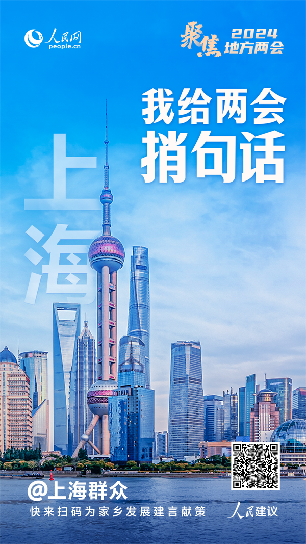 人民網上海1月15日電 (記者唐小麗)2024年上海兩會即將召開,即日起,人民網推出“我給上海兩會捎句話”大型建言征集活動(簡稱“捎句話”活動),廣大網友可通過人民網“領導留言板”小程序、“人民網+”客戶端等渠道,為家鄉發展積極建言獻策。