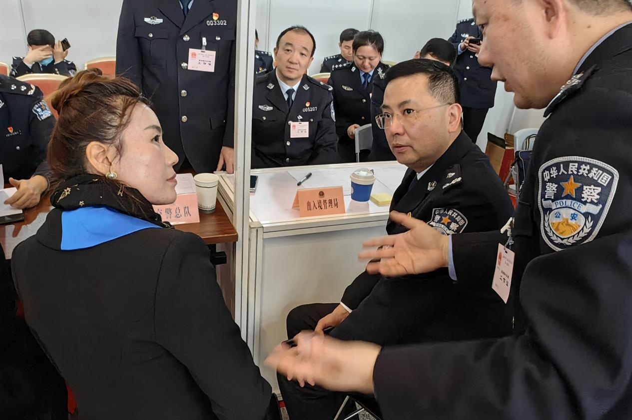 周瑜代表(左)與上海市公安局工作人員交流。人民網記者 唐小麗攝