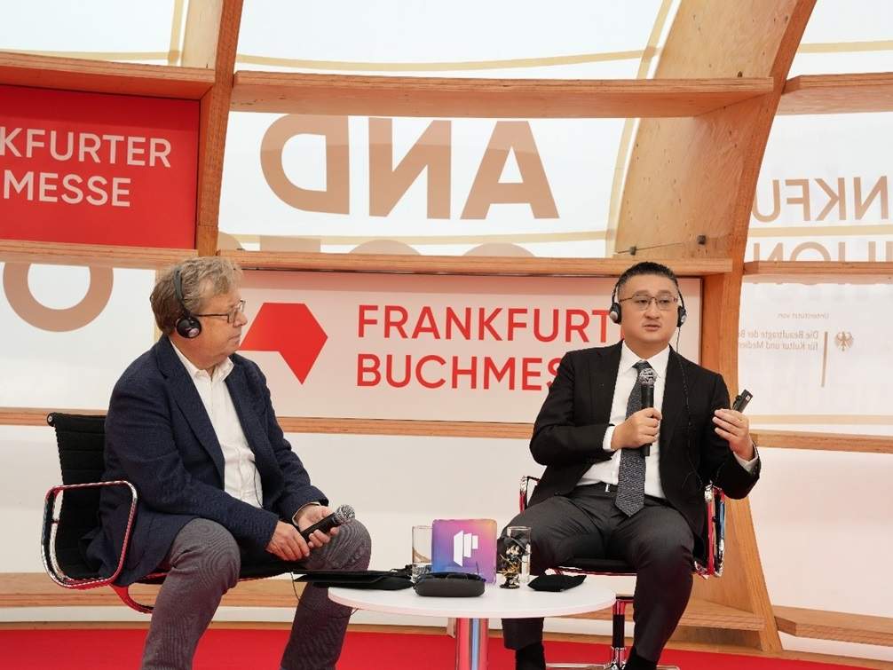 閱文集團首席執行官兼總裁侯曉楠(右)參加法蘭克福書展“全球出版50強首席執行官對談”