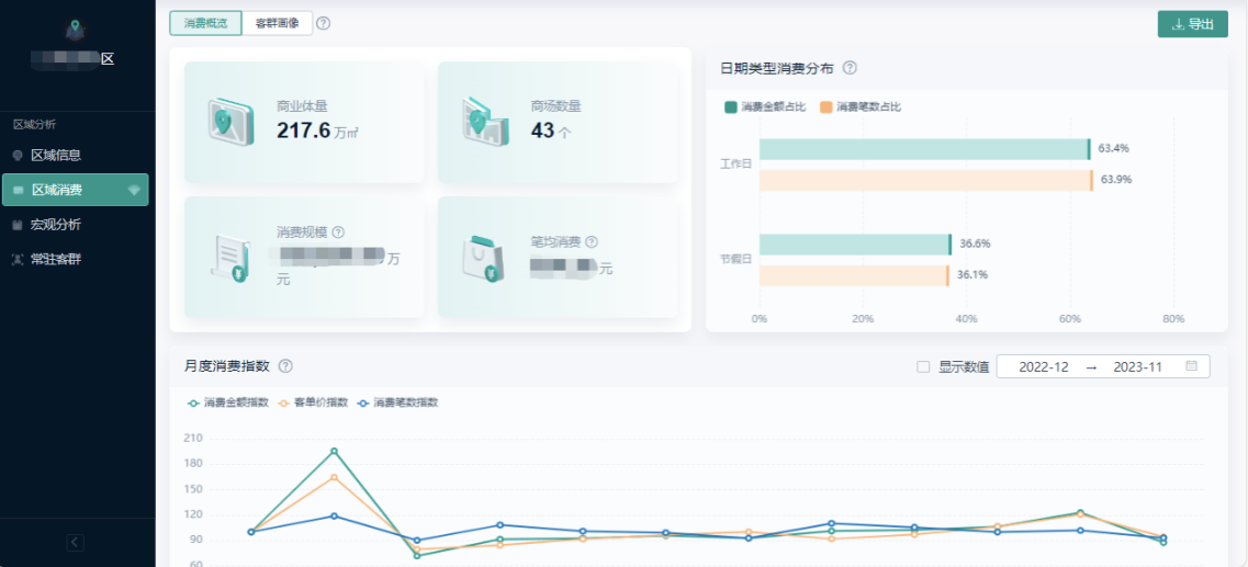 針對商務部門、文旅部門、發改部門等政府機構精準、多角度掌握區域消費、客流變動情況的需求,“全景智圖”通過分析區縣、板塊、商圈、商場相關消費和客流重點數據,以及客流到訪特征、消費特征及商場提袋率等數據情況,可助力政府部門實現精準、實時、統一標準的長線數據監測,為政策研判、指導市場提供有效抓手。