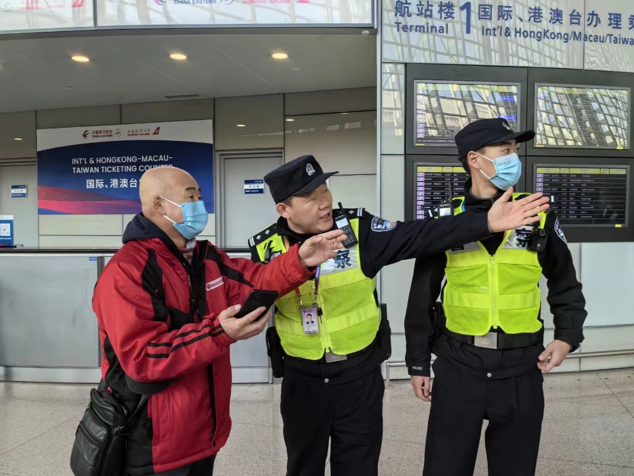 人民網上海2月9日電 (記者王文娟)“虹橋火車站南出發層5號口直走就到!”閔行分局新虹派出所民警正在虹橋樞紐為歸家的旅客指路。除夕已至,全市各火車站、機場、高速道口依舊迎來了一波春運出行高峰。為應對除夕春運出行大客流,上海警方提前研判,持續升級優化交通樞紐管理措施,全面排查清除道路安全隱患,制定完善“一點一方案”,用心守護旅客平安“回家路”。