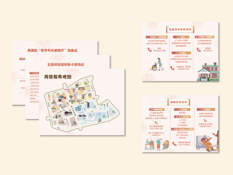“安享包”內包含一張一對一匹配的“五星級”個性化服務清單、一張“四星級”服務菜單、一張結對聯絡表、一個應急服務冰箱貼和一張標注有各類養老設施點位的周邊服務地圖。將各類服務信息和聯絡方式分類梳理、整合鏈接,形成一份體系完整、內容清晰的指引,方便老人翻閱查看,真正做到可知、可選、可用、可及。此外還推出養老服務一門式咨詢熱線,一個電話號碼可涵蓋各類養老服務的咨詢和受理,提高服務信息可及性。