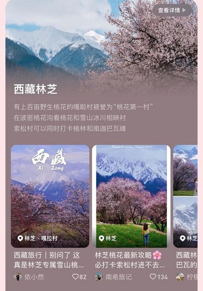 為滿足年輕人日益個性化的賞花需求,2024年的賞花地圖除了按照地區和花卉品種分類呈現攻略信息,精選優質達人筆記外,還將該地區圍繞“賞花”延伸而出的全新玩法和特色體驗羅列其中。去林芝賞桃花之余來一次冰川徒步,去川西賞梨花的同時深入藏區體驗地道藏式生活,在貴安萬畝櫻花園中拍出自己的“人生照片”,每個人都可以根據自己的興趣偏好,在當地找到最適合自己的賞花“姿勢”。