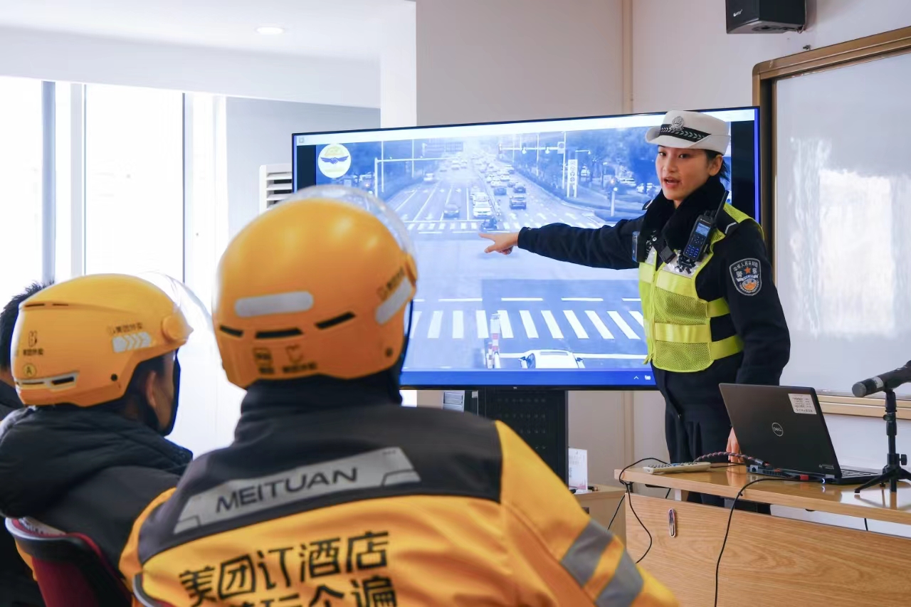 陸家嘴金融城的白領們有巨大的外賣點餐需求。顧逸瑋發現外賣小哥們為了搶時間,經常穿梭于“禁非”路段,有些還在夏天為了貪涼不戴頭盔,給人身安全帶來極大隱患。在發現問題之后,她迅速上報中隊,并主動擔任騎手教育基地授課員,加強騎手安全意識灌輸,并為騎手制作避開禁非區的環形安全路線圖、設立配套專用停車位,確保騎手停車后步行送餐時間不超過5分鐘。