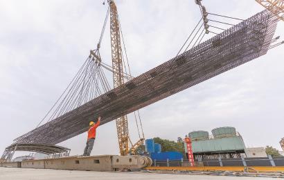 昨天,在軌交19號線江楊南路站,一幅幅40余米長的鋼筋籠開始吊裝入地,19號線全線首個車站已正式進入主體工程施工階段。