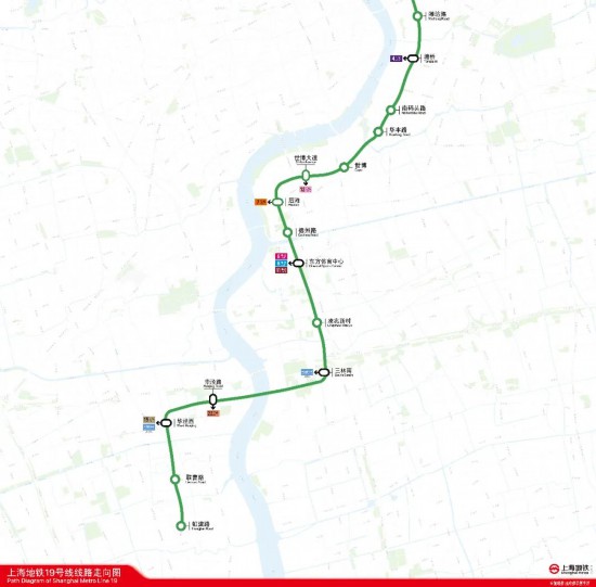 上海市軌道交通19號線工程途經閔行區、徐匯區、浦東新區、虹口區和寶山區五個行政區并串聯服務于沿線閔行吳涇潛力地區、徐匯南濱江、三林南、前灘、后灘、世博會地區、浦東南路沿線、陸家嘴CBD地區、北外灘核心區、四川北路商圈、涼城地區、吳淞創新城、鐵路寶山站等重要地區,形成連接沿線的快速客運通道,彌補前灘—世博地區、陸家嘴、北外灘、虹口核心區南北向軌道交通線路的缺失,擴大軌道交通覆蓋范圍,銜接鐵路寶山站,提升樞紐軌道交通集散服務和可達性,通過與沿線相交多條軌道交通線路換乘,并分流線網中平行段線路客流壓力,進一步完善網絡功能。