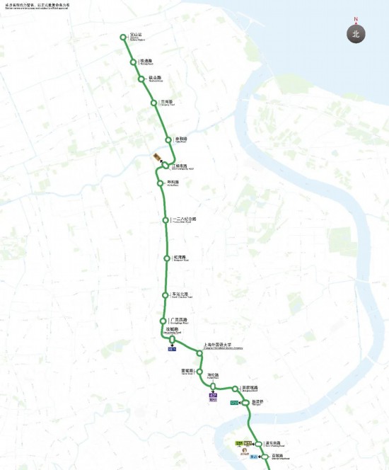 上海市軌道交通19號線工程起于閔行區虹建路站,終于寶山區寶山站站。線路主要沿景洪路—華涇路—過黃浦江—東育路—濟明路—國展路—雪野路—浦東南路—過黃浦江—公平路—天水路—甜愛路—廣中路—廣粵路—江楊南路—規劃呼蘭路—鐵山路等道路走行,線路全長約46.168公里,全部采用地下敷設方式,全線設34座車站、2座中間風井,其中換乘站18座,平均站間距為1.39km。全線設2座車輛基地,澄江路車輛段(與23號線共用)和鐵山路停車場。