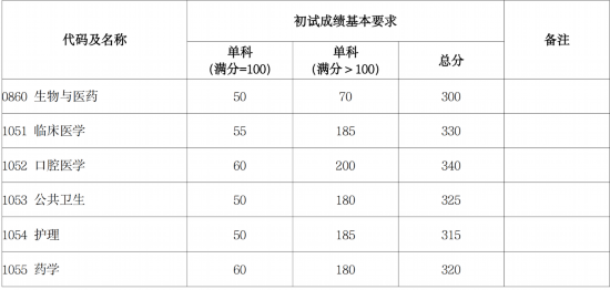 二、專業學位初試成績基本要求(不含上海醫學院)