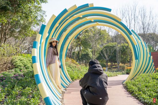 天氣晴好,不少市民游客來到鮮花港打卡游玩。