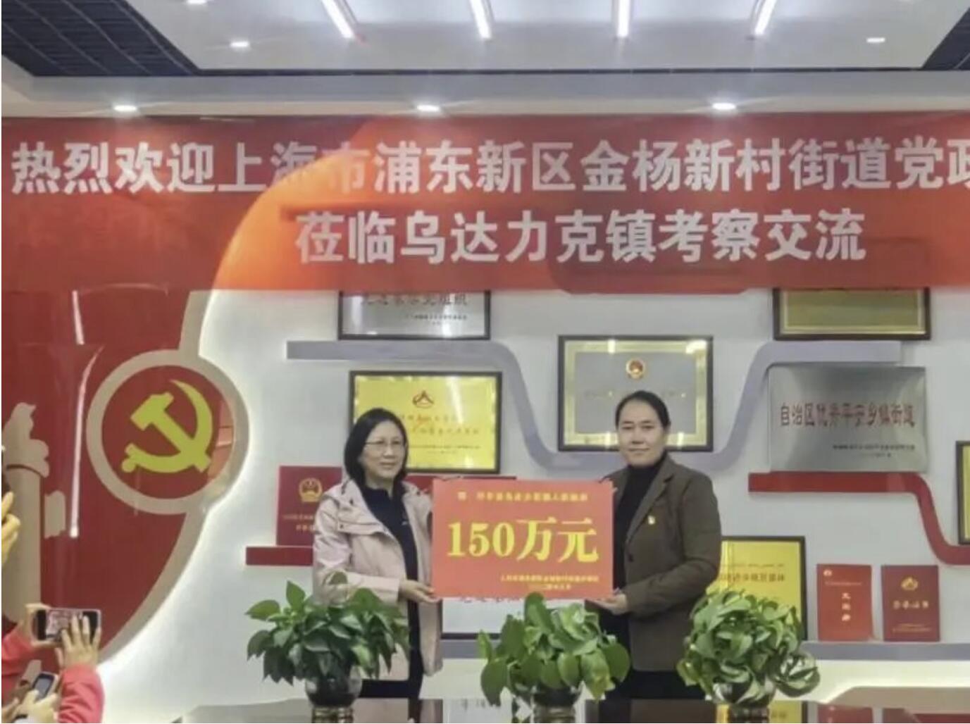 代表團成員上海市浦東新區公路建設發展有限公司總經理張承善,為支持當地發展,向烏達力克鎮人民政府捐贈資金2萬元。