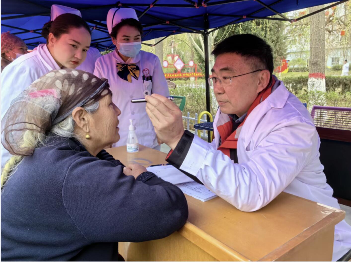 日前,在上海援疆巴楚分指揮部的積極溝通下,第十批上海援疆干部、現任上海市第三康復醫院副院長劉登帶領上海眼科專家團隊和中國健康促進基金會一行來到巴楚縣開展眼科專家義診、健康咨詢、培訓講座、手術等醫療活動。