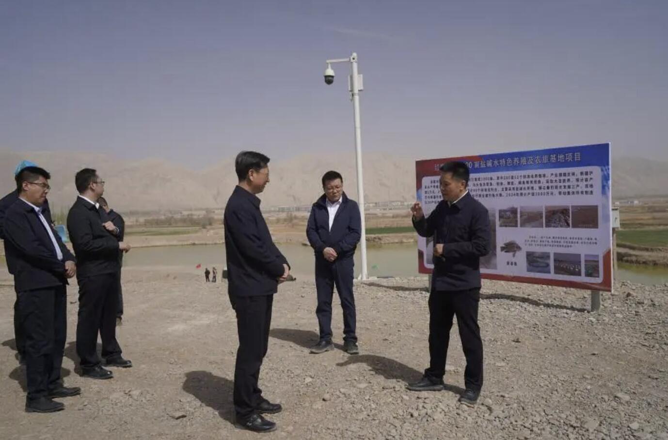 在紅旗農場,調研組現場察看海鮮室內養殖基地、室外千畝魚塘養殖基地、鹽堿地綜合改造利用示范項目,調研農場“白色鹽堿、藍色產業、綠色產品、紅色事業”的探索實踐。