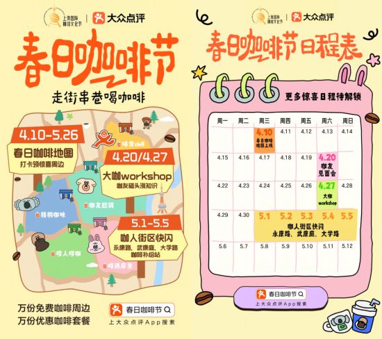 大眾點評推出“春日咖啡節”系列活動,上線“春日咖啡地圖”,并在永康路、武康路、大學路等區域打造春日咖啡節主題街區,同步推出線上咖啡節限定超低折扣。