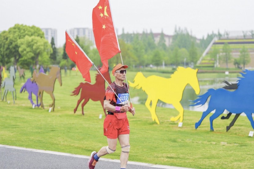 選手全程舉著五星國旗完成10km比賽
