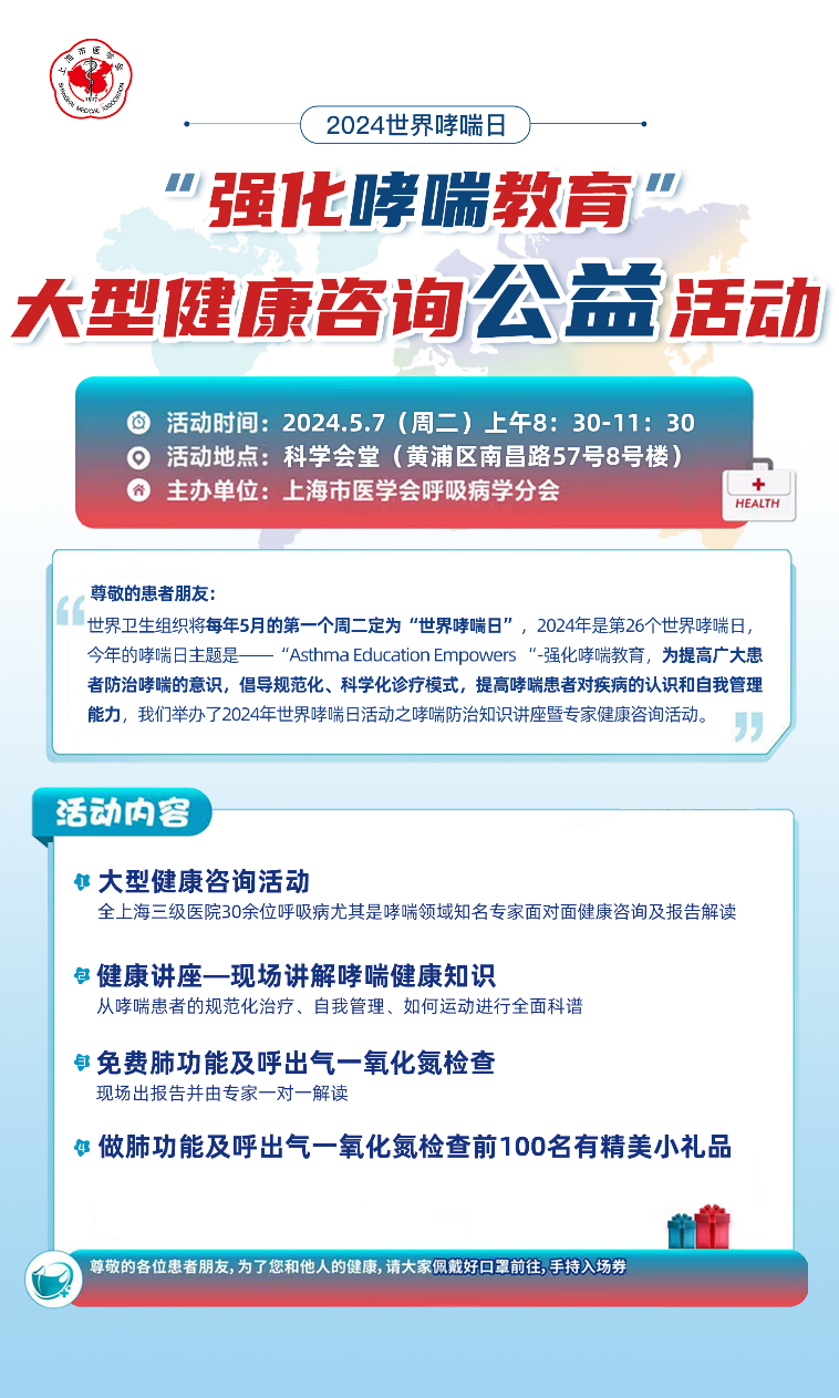 2024年世界哮喘日 上海醫學會將舉辦義診宣教活動