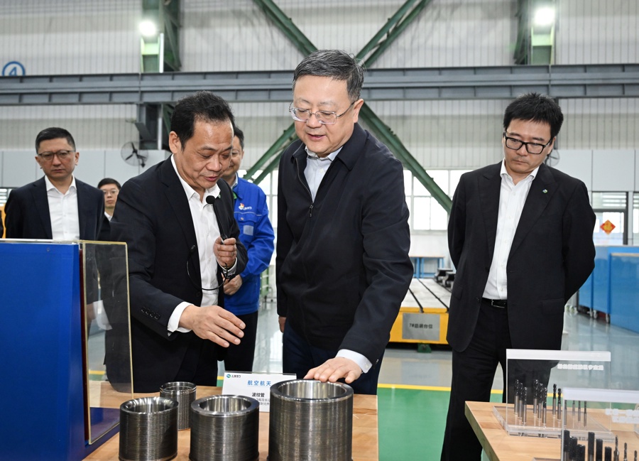 上海市委書記陳吉寧在上海電氣集團調研。上觀新聞圖