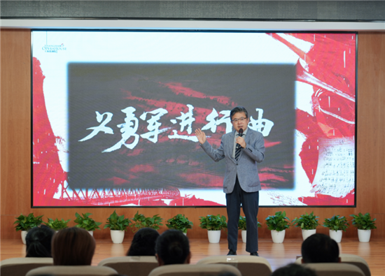 本場大師課以“從民族歌劇《義勇軍進行曲》說起”為主題,通過大師講+青年演員演的藝術形式生動展開,用歌聲講述國歌的誕生。