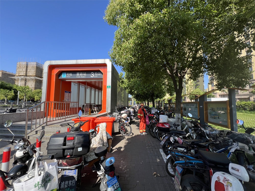 曹路鎮是市區級大型居住社區,常住人口約18萬。近年來,越來越多的市民選擇將電動自行車作為通勤工具,這也使得地鐵站周邊的電動自行車停放問題日益凸顯。