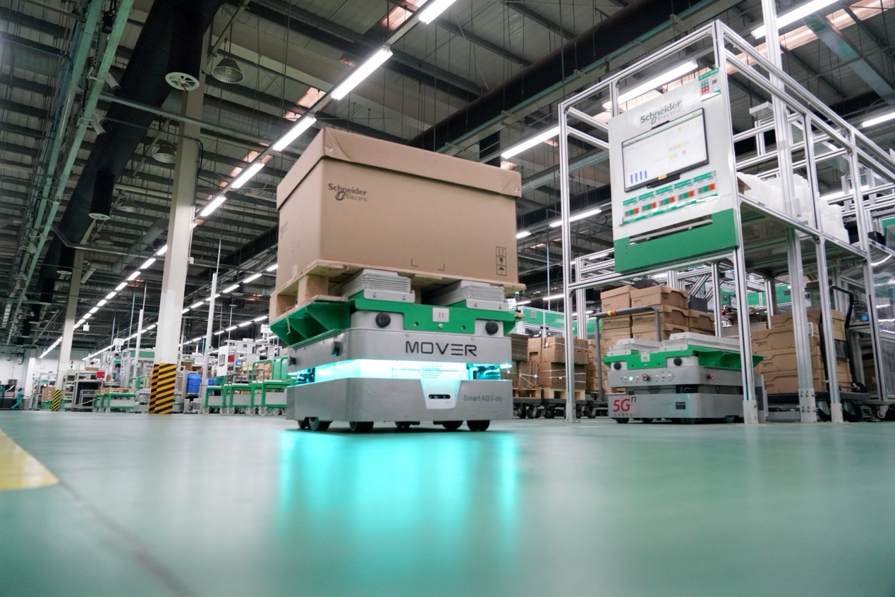 位于普陀區施耐德工控車間內,機器人在自動分揀運輸。趙晶攝