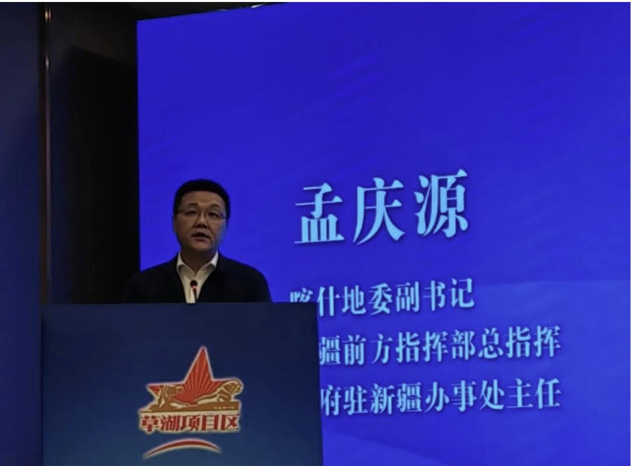孟慶源指出,草湖項目區黨政代表團第一時間來滬對接工作,做了大量前期準備工作,圍繞草湖發展和企業個性化需求開展精準對接,著力發展產業、聚集人口,用實際行動完整準確全面貫徹新時代黨的治疆方略。草湖項目區歷史悠久、文化深厚、優勢明顯,是廣大企業投資興業的熱土,目前聚焦現代農業、紡織服裝、光伏、裝備制造以及現代服務業等產業,完善各項配套措施,營造良好營商環境。經過各方共同努力,本月中旬,東航、南航相繼開通滬喀直航,大大縮短了上海到喀什、到草湖的飛行時間和心理距離,為兩地加強人員往來和經貿合作提供了更為快捷的通道。上海將加大產業援疆支持力度,共同開創兩地產業合作新局面。這次的推介活動,是落實兩地座談會相關精神的務實舉措,我們將以對口支援為契機,加強合作、攜手并進,為有意愿到草湖發展的企業搭好平臺、做好服務、當好“店小二”。