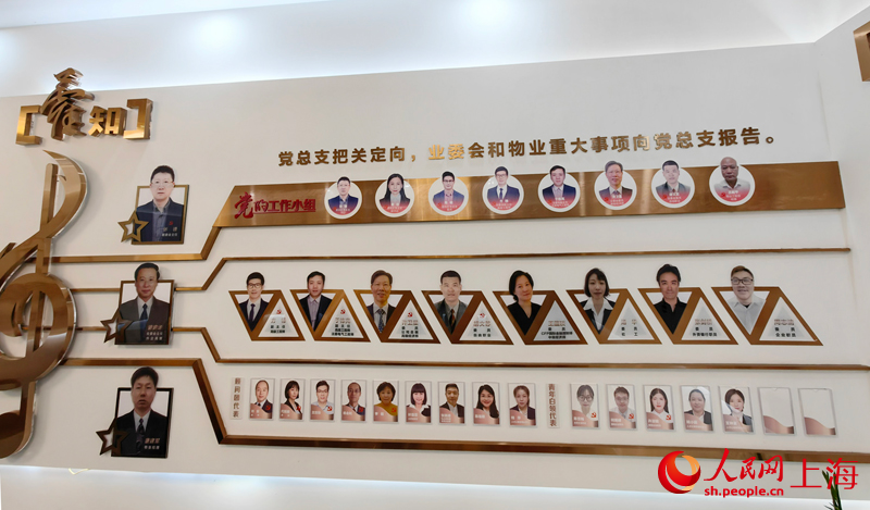 小區“三駕馬車”和顧問團成員上墻展示。人民網記者 唐小麗攝