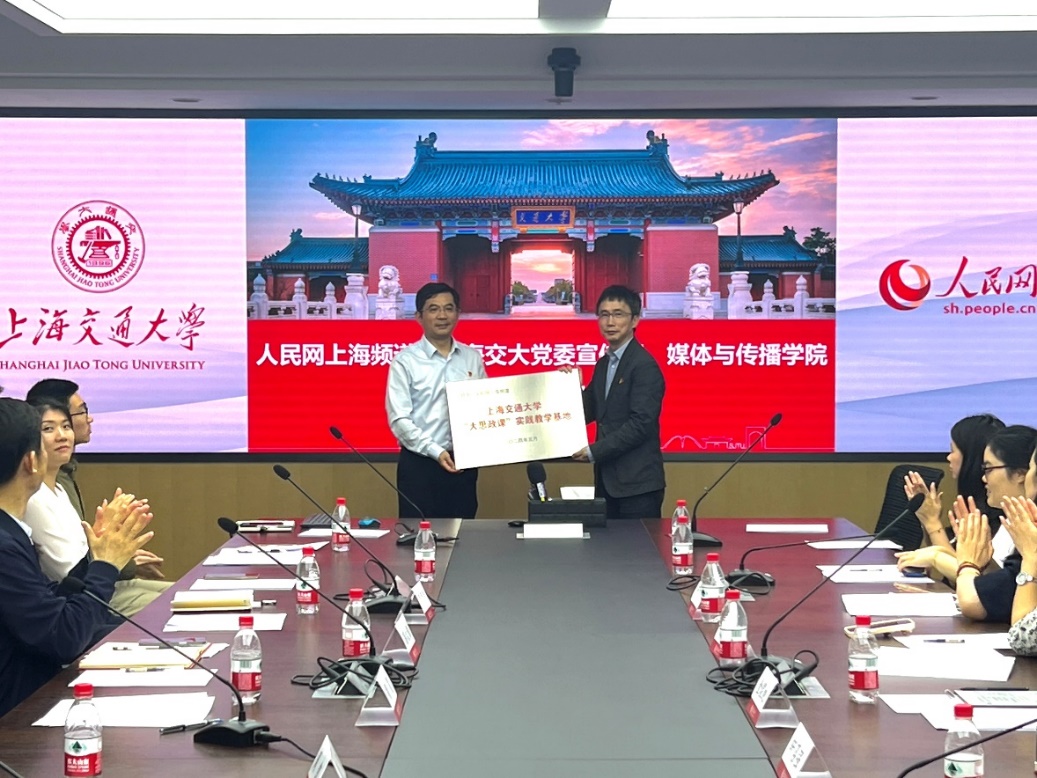為全面推進“大思政課”建設,上海交通大學將在人民網上海頻道設立“大思政課”實踐教學基地,共同推動用黨的創新理論鑄魂育人?;顒蝇F場,胡昊和金煜純共同為上海交通大學“大思政課”實踐教學基地授牌。接下來,雙方將將合力創新思政育人模式,探索加大思政課資源的開發、共享。