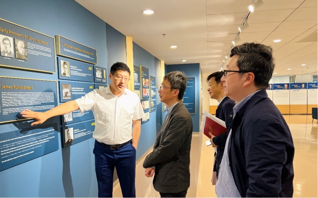 一行人還參觀了密西根學院。學院黨委副書記王沖介紹了相關情況。作為一所享譽中外的國際化學院,密西根學院是中美兩所頂尖大學——美國密西根大學和上海交通大學推行國際合作的重要成果。密西根學院通過融合中美兩國教育體系的特色,形成了一套獨具特色的密西根學院教育模式,獲得了國內外的高度認可。