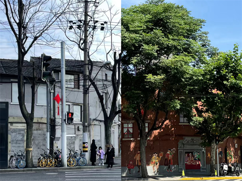 昌平路陜西北路轉角處改造前后對比。