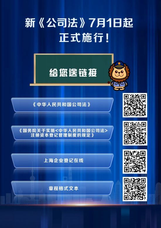 上海市市場監管局介紹,新修訂的《中華人民共和國公司法》(以下簡稱新《公司法》)7月1日施行,《國務院關于實施〈中華人民共和國公司法〉注冊資本登記管理制度的規定》7月1日頒布并施行。詳見↓