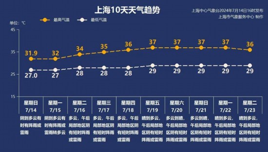上海中心氣象臺預報,今起7天,申城最高溫在35℃上下浮動,極端最高溫會超過37℃,不僅白天熱,夜溫也接近30℃。