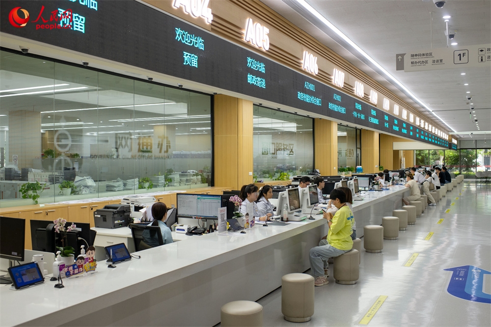 企業辦事員王慧在綜合窗口辦理業務。人民網記者 翁奇羽攝