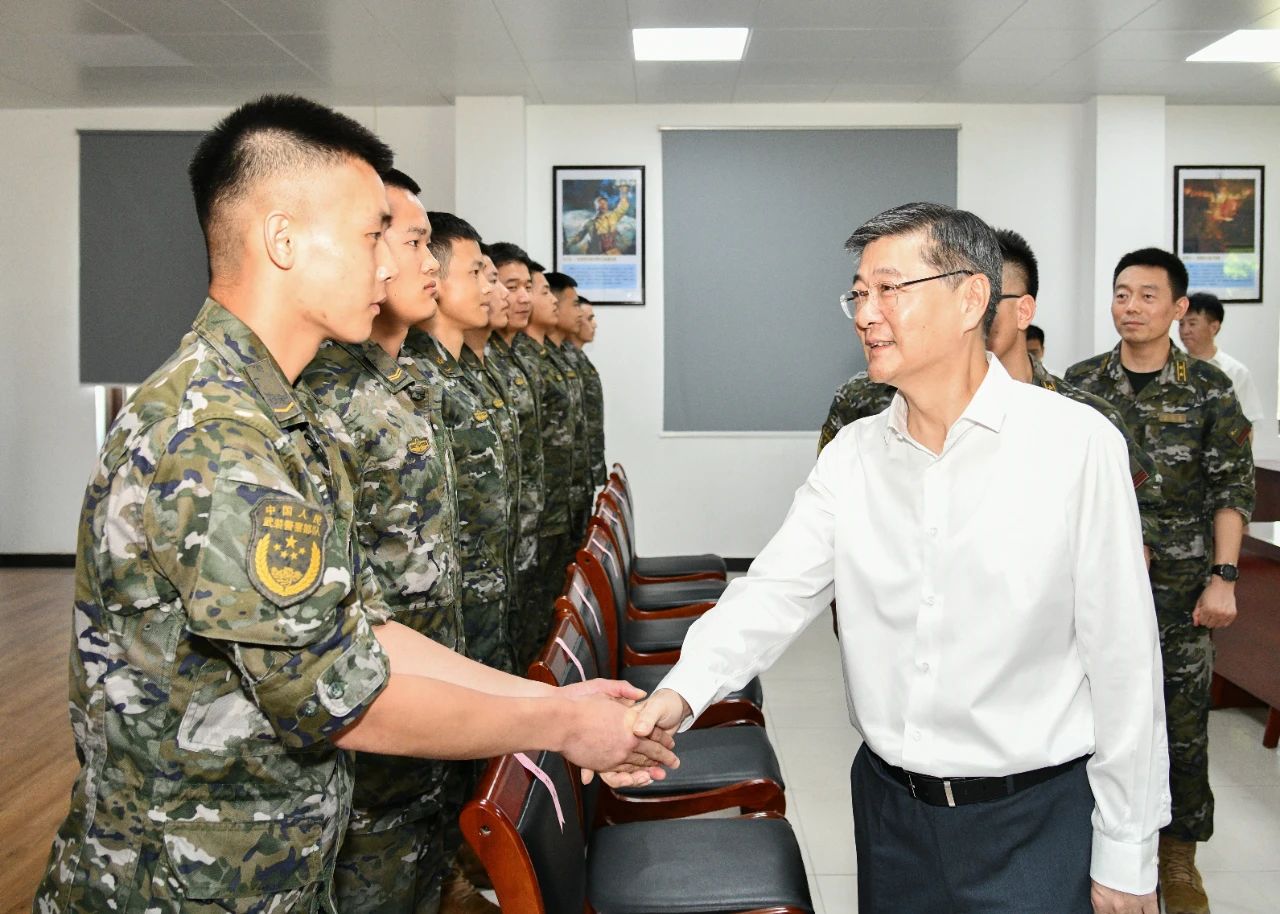 7月25日上午,區政協主席劉豫峰一行來到陸軍某旅特訓營開展2024年“八一”走訪慰問活動。劉豫峰向駐區部隊官兵們致以親切的問候和節日的祝福,并實地參觀營區,了解官兵們的日常生活與訓練情況。