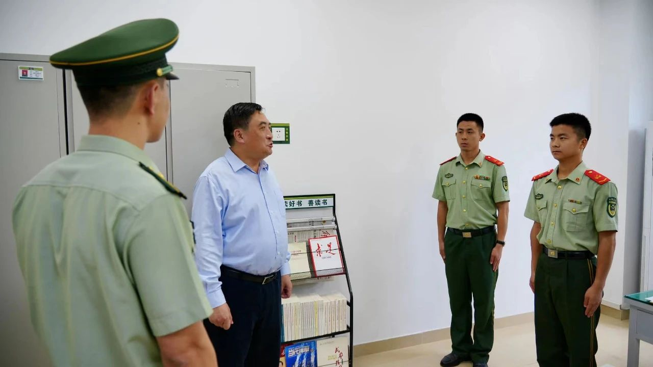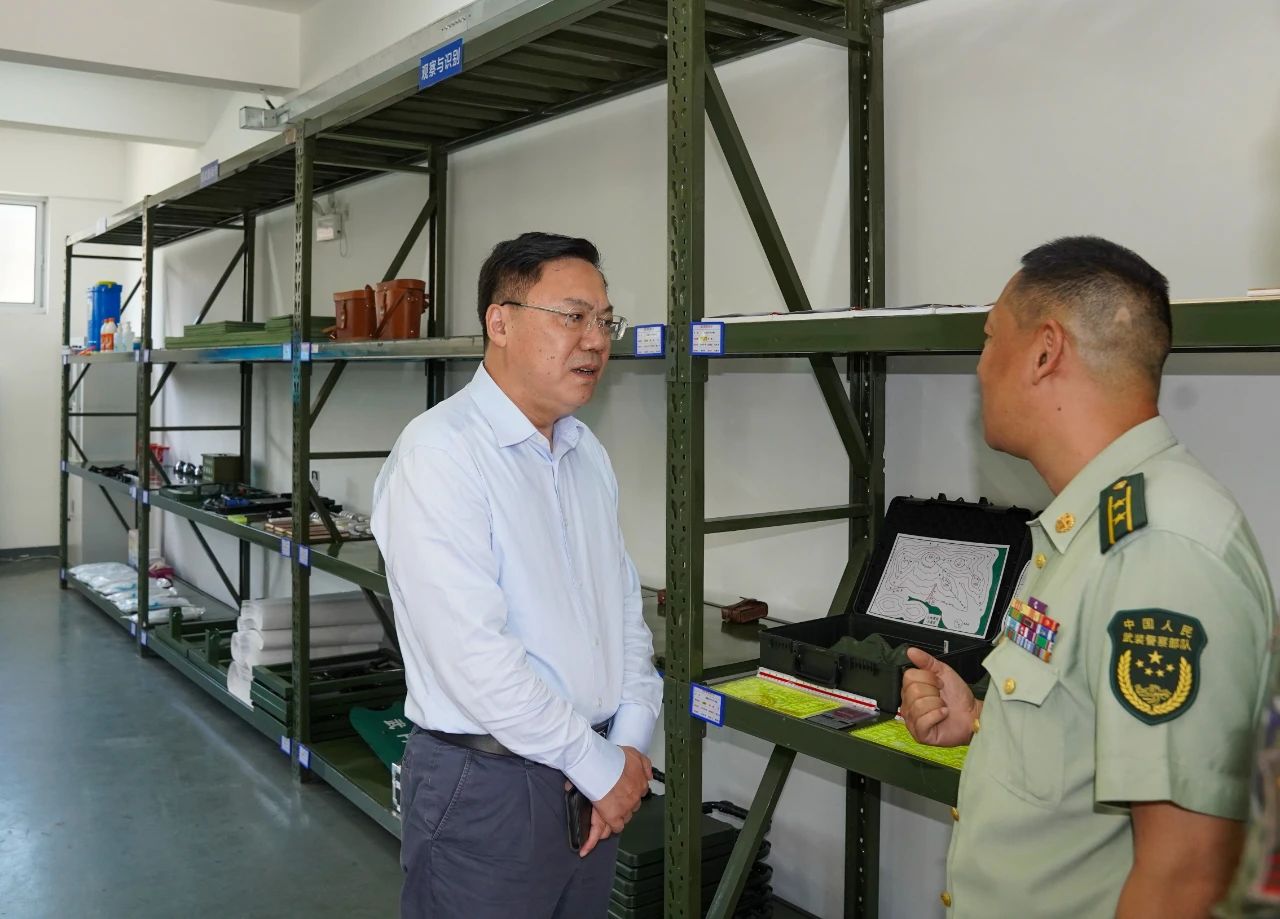7月25日下午,區委副書記、區長李澤龍來到武警上??傟爤糖诘谖逯ш犎箨?,向官兵們致以親切的問候和節日的祝福,并實地參觀武警戰備物質倉庫、心理健康干預室、戰士宿舍,聽取部隊介紹運行情況,了解官兵們工作、生活情況,詳細詢問部隊建設和工作開展中的具體困難,共謀軍地建設良策,共話軍民魚水深情。